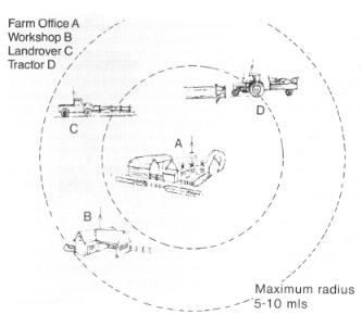 Based on CB radio's the system incorporates a digital selective calling system to ensure ease of contact with other radios on a user group thus ensuring there is no access from any other users on the band and total silence when the radio's are not receiving or transmitting. The CatCall system provides effective communication over a maximum radius of 5-10 miles, depending on location and radio conditions. Up to 30 different stations, may be used on any one system each with their own unique receive code making the system suitable for both small farms and large estates alike. Over 10,000 Catcall radio's were sold between 1983 and 1994 when the popularity of cellular phones brought CatCall production to an end. Our service department closed in 2004 |