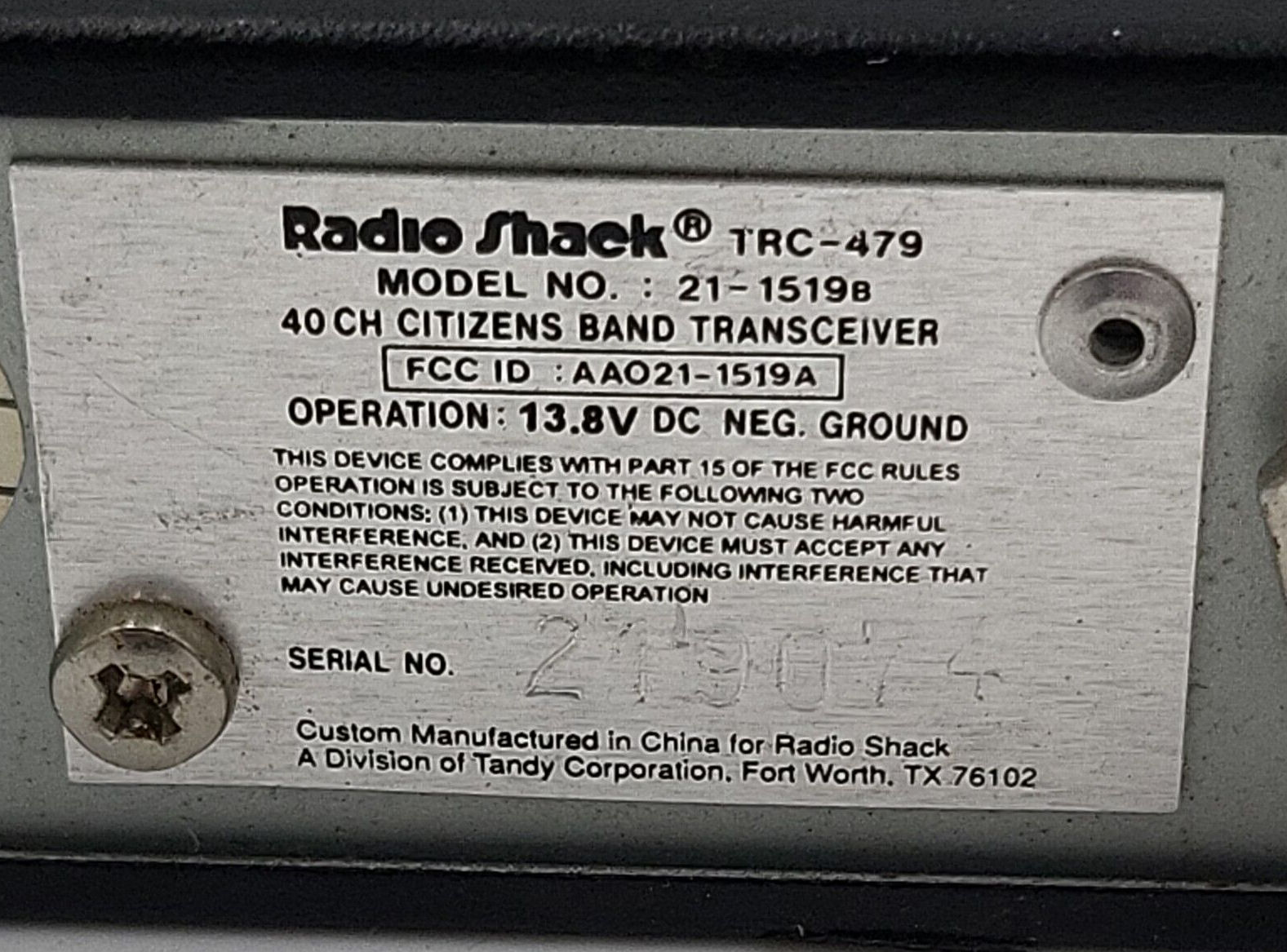 RadioShack TRC-479 {USA Catalog Number: 21-1519B}*