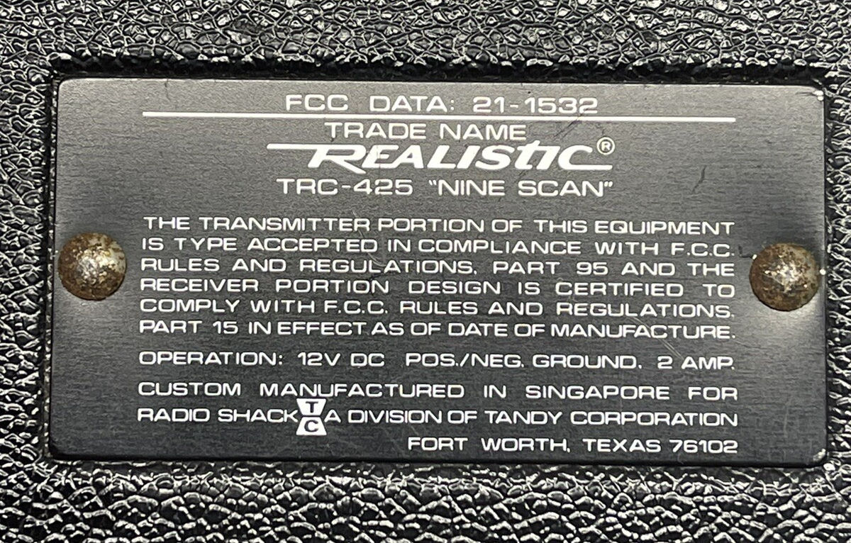 Realistic TRC-425 "Nine Scan" {USA Catalog Number: 21-1532}*